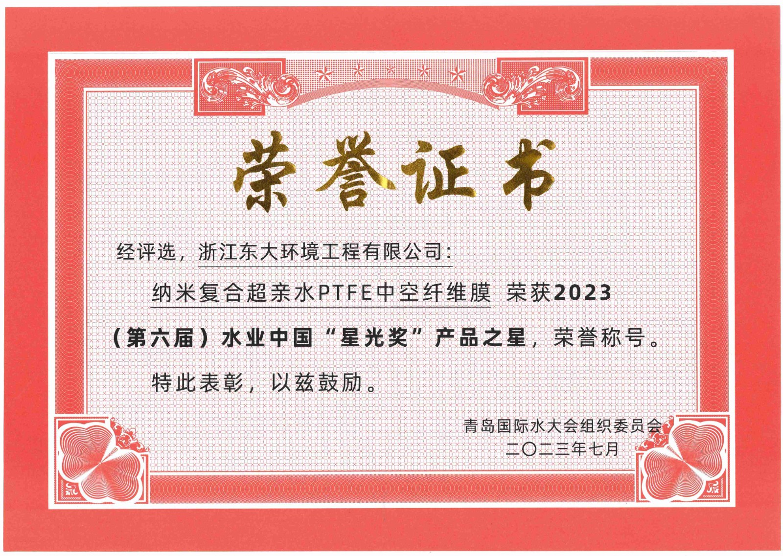 2023青島國際水大會&水展——東大環境參展并獲得榮譽獎項